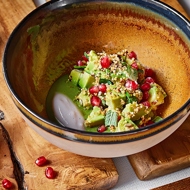 Cut the stems off the sorrel leaves. Finely chop three or four stems and add them to the avocado. Also, add the cooked quinoa.