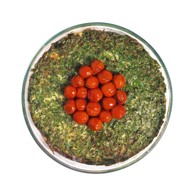Garnish the finished green kuku omelet with roasted tomatoes.