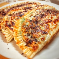 Brush the hot qutabs with butter and sprinkle with sumac.