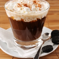 In a saucepan, combine coffee, bourbon, liqueur, chopped chocolate, and 2 tablespoons of cream. Place over low heat and stir until the mixture is smooth and the chocolate has melted (do not bring to a boil).