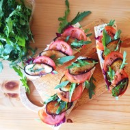 Baguette with Vegetables, Cream Cheese, and Arugula