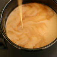 Pour in the pre-heated milk.