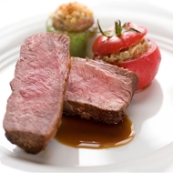Baked Alpine Lamb Fillet with Tomatoes and Young Zucchini Stuffed with Eggplant