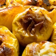 For stuffing the apples, it's best to use strawberry, blackcurrant, or cherry (pitted) jam. It's a good idea to add 0.5 cup of crushed breadcrumbs or cake crumbs, crushed almonds, or finely chopped walnuts to the jam used for stuffing the apples.