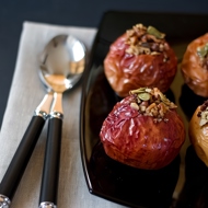 Baked Apples with Cherries, Pistachios, Port Wine, and Orange Zest