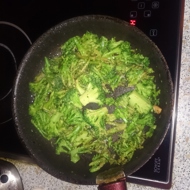 Meanwhile, add the frozen broccoli to the bag with the fillet, mix, and transfer to the skillet where the chicken was fried. Cook on low heat for 10 minutes. It will thaw and absorb the flavors of the chicken.