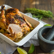 Place the second lemon inside the chicken; this will help it hold its shape better and absorb citrus aromas.