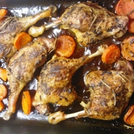 You can shorten the cooking time in 2 ways: 1. Marinate the legs in yogurt for about 10 hours, and wash it off before cooking. This method works very well with wild duck — it turns out incredibly tender! 2. Increase the temperature to 200–220 degrees Celsius right away, but then you won't get that slow-cooked duck. If possible, I recommend slow-cooking it for a couple of hours without opening the foil at a temperature of 160–180 degrees Celsius! Enjoy your meal!