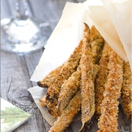 Place the coated eggplant sticks on a baking sheet lined with parchment paper. Put in a preheated oven at 392°F. Bake for about 15 minutes.
