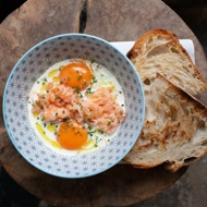 Remove the eggs and top them with pieces of smoked salmon. Serve with lightly toasted bread.