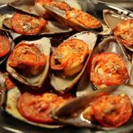 Baked Jalapeño Mussels with Tomatoes and Garlic