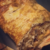 About the filling quantity: in this recipe, you can either make one very fluffy roll using all the filling or divide it into two (that is, use two sheets of lavash), which is better because it gets eaten up instantly by guests, and you have another one in reserve!