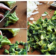 Return to the meat mixture: add the broccoli (you can also use cauliflower or leeks, whatever you prefer!), a couple of tablespoons of chicken broth, and simmer covered over low heat for about 5 minutes.