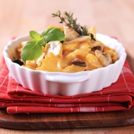 Baked Pasta with Butternut Squash and Mushrooms under a Cheese Crust