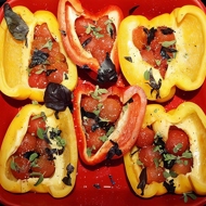 Baked Peppers with Cherry Tomatoes, Basil, and Marjoram