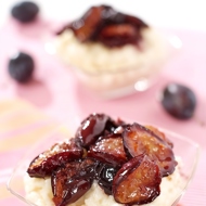 Baked plums with brandy and lemon zest