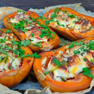 Baked Pumpkin Halves with Chicken and Vegetables