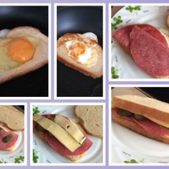 Baked sandwiches with ham, tomatoes, and eggs