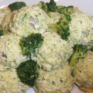 Grease a baking dish with 10 grams of butter and place the semolina in balls (if available, use an ice cream scoop). After laying one layer of balls, add some sea bass and broccoli on top. Make a second layer of balls. Place the remaining sea bass and broccoli on top. Sprinkle with Parmesan cheese, add pieces of butter (20 grams) on top, and bake for 10 minutes at 392°F.