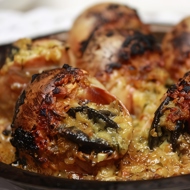 Place the snails in the escargotiere one by one, top each with the butter mixture, and sprinkle with breadcrumbs.