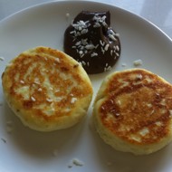 Baked Vanilla Cheese Pancakes with Chocolate Sauce