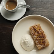 A delight for all Greek children — a quick dessert made from Greek phyllo pastry soaked in aromatic cream. Recipe from a restaurant in Moscow, led by a chef named John Smith.