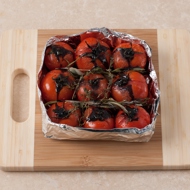 Form a square container from 4 layers of foil and place the tomatoes inside.