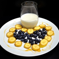Blend the banana, blueberries, honey, and milk (or water) until smooth.