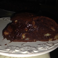 Add the eggs to the chocolate mixture, stir well, and pour the mixture into the dry ingredients.