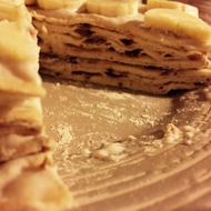Prepare the cream. Blend the sour cream, sugar, and bananas using a blender.
