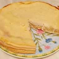 Place the sliced bananas at the bottom of a baking dish. Pour the cottage cheese mixture over them.