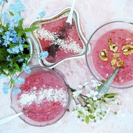 Blend frozen bananas and pitted berries with honey in a blender. The ice cream is ready.