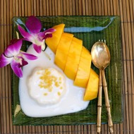 Meanwhile, in a large pot, combine the coconut milk, light sugar, water, and the pandan leaves tied in a knot. Place over low heat and stir until the sugar dissolves. Add the tapioca and mix well. Remove from heat and let it cool slightly. Add thinly sliced bananas, mix, cover with plastic wrap, and refrigerate to cool.