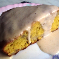 Remove the hot pie from the mold and drizzle with sauce. NOT ALL OF IT! Let the pie rest for a bit (it won't last long — it's too tempting))) Before serving, be sure to pour some sauce over the slices!