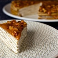 Banana Crepe Cake with Yogurt and Walnut Glaze