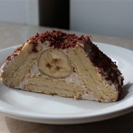 In the central row, place a banana (if it is very curved, cut it so that it lies relatively flat).