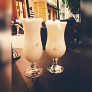 Blend the bananas, gradually adding the milk. You can skip the sugar if the bananas are very sweet.