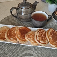 Use a tablespoon to form pancakes on a well-heated skillet greased with sunflower oil.