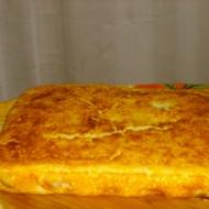 Pour the batter into a baking pan lined with parchment paper. Bake the pie at 180–374°F for 30–40 minutes.