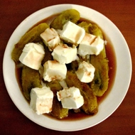 Place them on a plate, cut the ice cream into cubes, and place it on top.