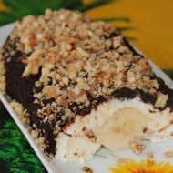 Mix the cottage cheese with two tablespoons of sugar and butter. Peel the banana and place it on a plate, carefully spread the cottage cheese mixture over the banana with a spoon. Cover the top with chocolate.