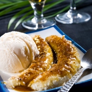 Grease a baking dish with butter, sprinkle the bottom with one tablespoon of treacle, layer the bananas, drizzle with rum, sprinkle with raisins, and the orange and lime zests, then pour in their juices. Season with the remaining treacle.
