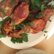 Sear the ribs until golden brown, then place them on a plate. Pour the marinade into the skillet and let it 'bubble' (do not keep it on the heat for more than a minute). Serve the sauce separately. Garnish the meat with parsley.