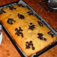 Line a baking dish with parchment paper and pour in the batter. Visually divide the batter into diamonds or squares, placing a nut (raisin, piece of chocolate, etc.) in each square.