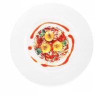 Separate the yolks from the whites, lightly beat the whites, strain through a chinois, sprinkle with flower salt, season with freshly ground pepper, mix with the garnish, and sauté while beating and stirring with a fork.