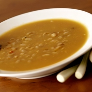 Blend the beans in portions in a blender until you get a thick paste. Then strain through a sieve into a clean pot. Mix the flour with two tablespoons of bean paste, add this mixture to the remaining beans, mix well, and return to the heat—stirring, cook for 8 minutes.