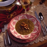 Blend the soup in a blender and pour into soup bowls. Top with sizzling chorizo and drizzle the remaining oil from the skillet over the bowls.