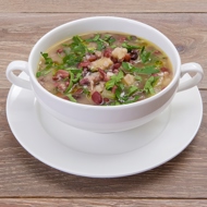 Add the garlic; lightly mash the finished soup with a potato masher to make it more homogeneous (but not to puree, leave some solid pieces).