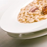 Remove the chorizo from the pot – slice it and return it to the pot. Remove the bay leaf. Pour everything into a soup tureen and serve immediately.