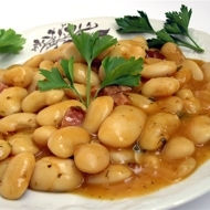Pour the contents of the pan into the pot with the beans, stir, and cook for another 30 minutes. Season with salt to taste. Remove the bacon, chop it into small pieces, and return it to the pot. Remove the shank and clove. Serve in a warmed dish.